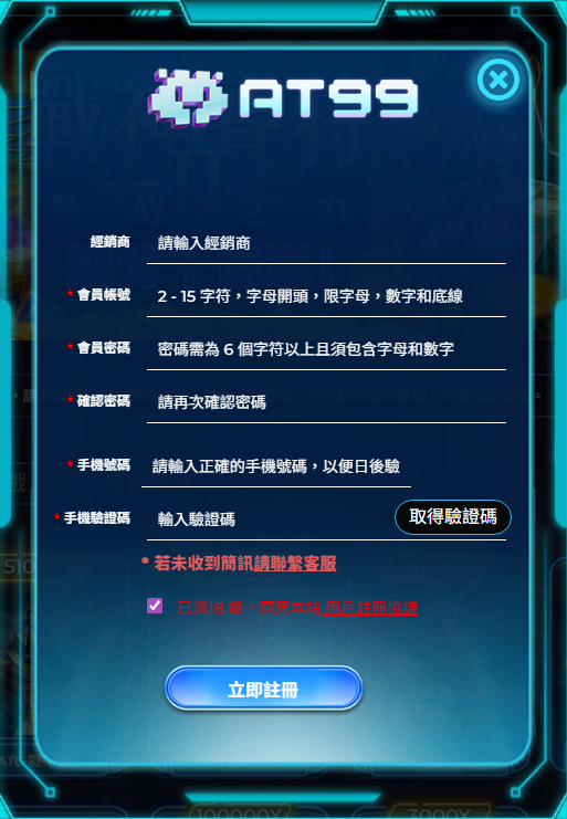 現在就註冊 AT99,開啟你的娛樂旅程!